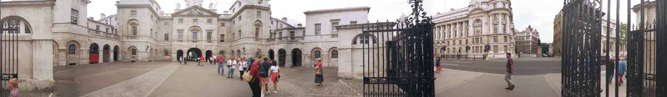 you are looking EAST at the HORSE GUARDS | There is always a sentry in the yard who has to stand still for two hours before being replaced. | THE CHANGING OF THE GUARD takes place here at 11 AM | you are looking west towards WHITEHALL | | |||||||||||